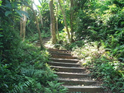 已是上午11點多了.朝陽國家步道主線全長2.2公里,路程約60至90分鐘可走完。從登山口出發,一開始是枕木鋪成的步道,呈上坡的往上攀爬.太久沒運動的我爬的氣喘噓噓